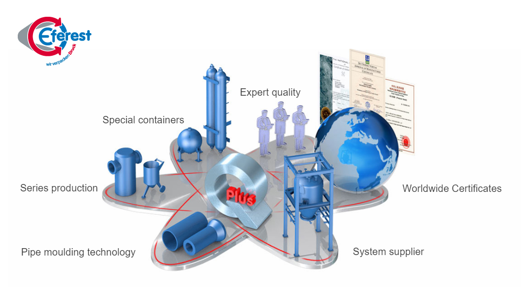 Eferest pressure containers made of steel, stainless steel, duplex, as well as plated materials.