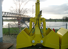 The hydraulic grab does not have an own drive unit. The hydraulic drive from the excavator provides the power. It is directly connected to the suspension of the excavator and the hydraulic supply lines.